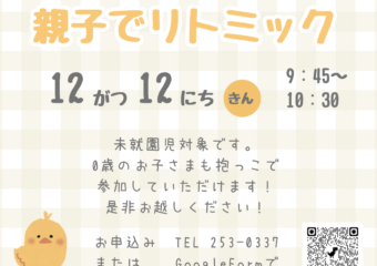 2024.06.20 / 最終更新日時 : 2024.07.01 postuser 園庭開放 未就園児対象 親子体操について 6月は未就園児対象の親子体操を開催いたします。 フレンズスポーツクラブの先生に来ていただき、幼稚園ホールで 親子で触れ合いながら体操を行います。 歩き始めたお子様から参加可能です。 親子で楽しく体を動かしましょう。 […]