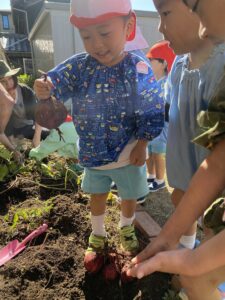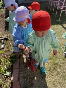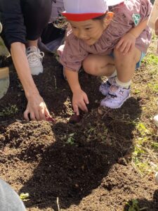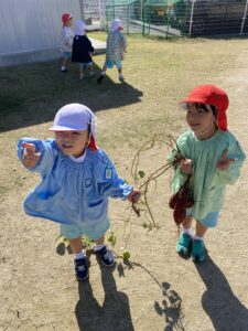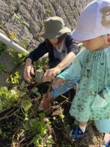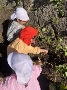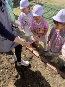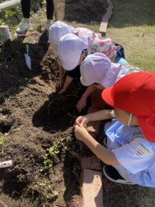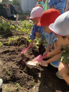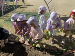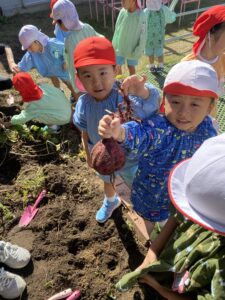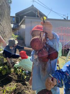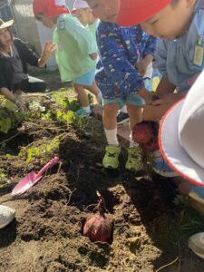 年中児、年長児が園庭の芋ほりをしました。