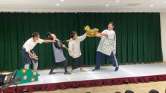 先生たちが歌、劇を披露しました。