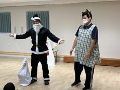 マジックショーを見たり、ペープサートを見たり、ジングルベルの曲に合わせて、ダンスを踊ったり、
