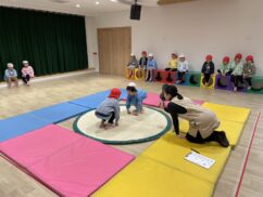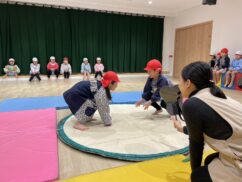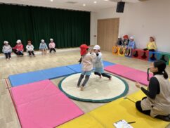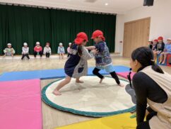 年長児が体育の活動で相撲をしました。